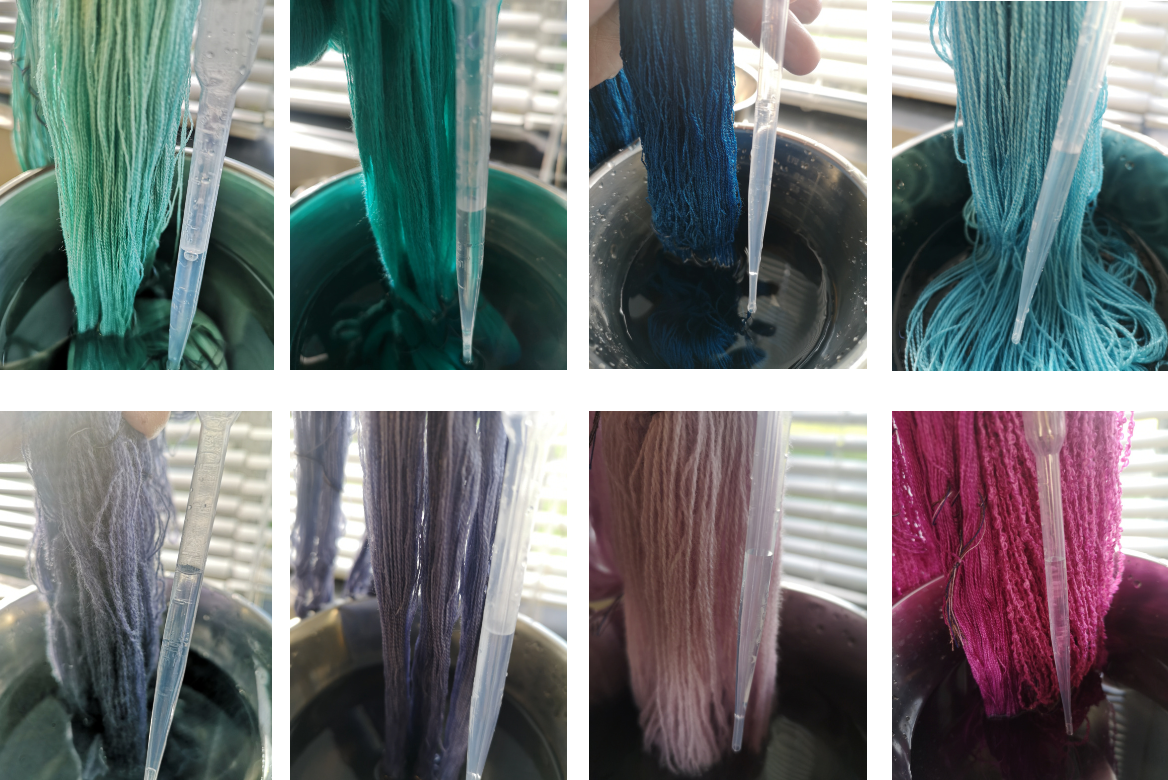 I use an exhaust dye method when dyeing all my own yarn. This process means less water is used and all the dye is used within the dye bath. It is therefore more environmentally friendly and sustainable. Looking after our planet is always on my mind and something I also consider when sourcing all of my yarns and materials.